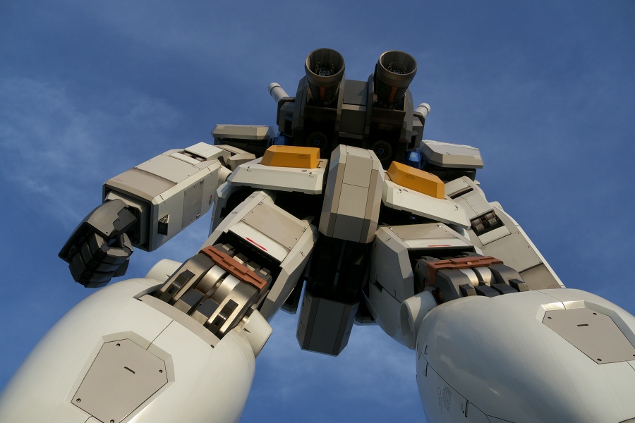 「ガンダムの後方から見上げる」 LUMIX G VARIO 7-14mm / F4.0 ASPH / 撮影:2009年8月 / 東京都品川区東八潮