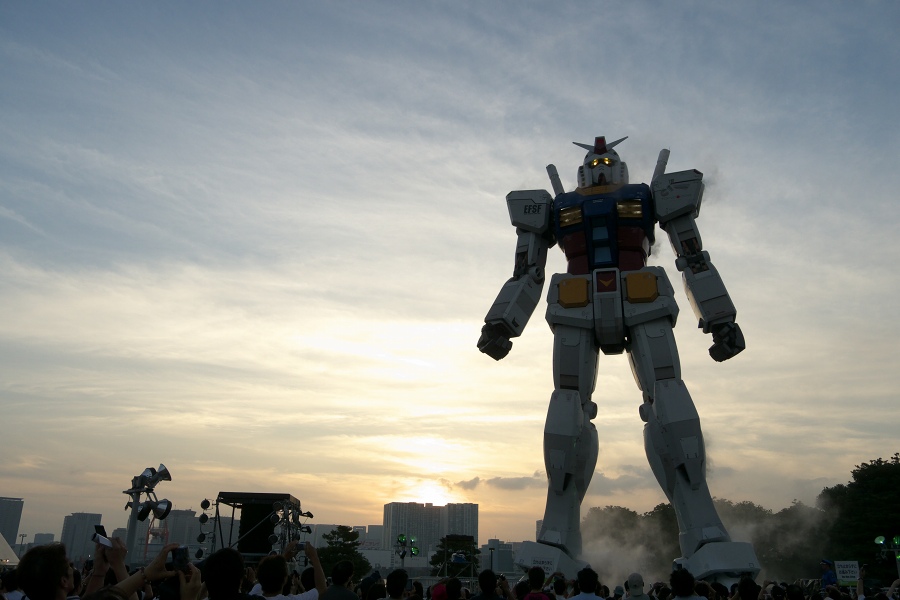 「ガンダムと夕日」 LUMIX G VARIO HD 14-140mm / F4.0-5.8 ASPH./ MEGA O.I.S. / 撮影:2009年8月 / 東京都品川区東八潮