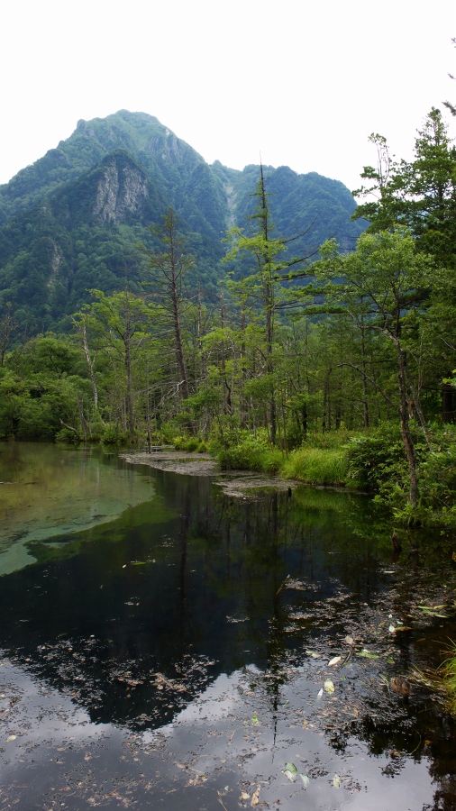 「岳沢湿原と六百山」 岳沢湿原より六百山の岩場を望む 撮影:2007年8月21日 / 上高地
