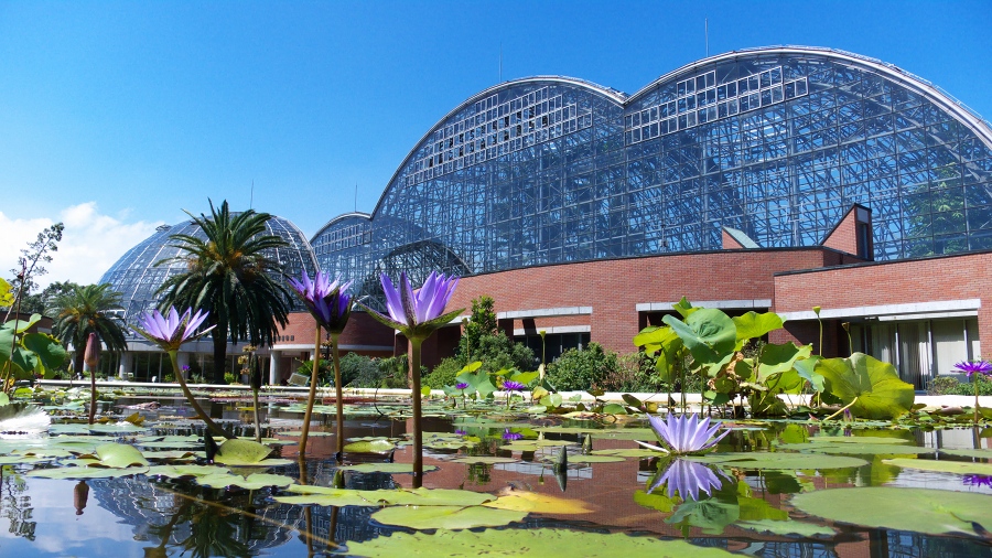 「温室ドームと熱帯スイレンの池」 撮影:2007年9月9日 / 夢の島熱帯植物館