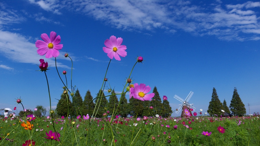 「コスモスと秋の空」 約100万本のコスモスがお花畑一面に咲き乱れる 撮影:2007年10月6日 / あけぼの山農業公園