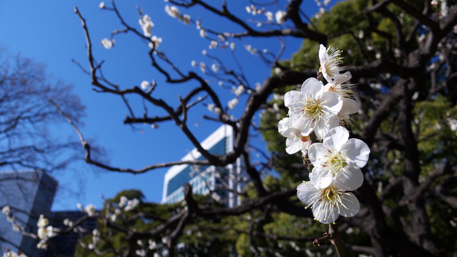「白梅と高層ビル」 撮影:2007年2月11日 / 浜離宮恩賜庭園