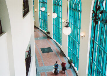 B’Way 濃紺を基調にしたモダンな印象の回廊。 |
