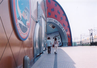 JR京葉線「舞浜駅」を降りて右に曲がると東京ディズニーランドである。 東京ディズニーランドに向かうゲートウエイ横にできたのが、国内最大級のディズニーショップ「ボン・ウ”ォヤージュ」。 ここを左に曲がるとディズニーランド入口がある。 |