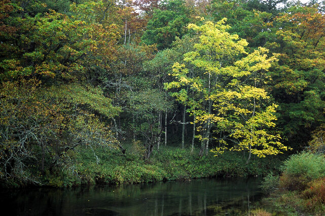 「湯川岸辺の紅葉」