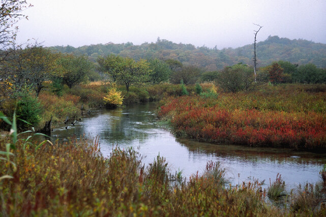 「湯川と湿原の紅葉」